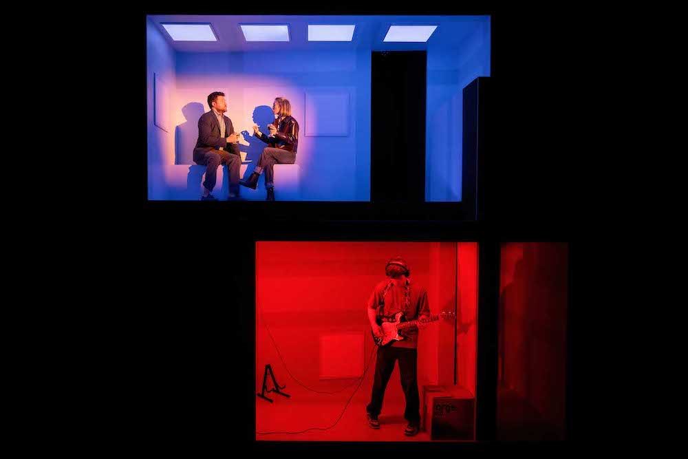 The life of the two siblings is explored through scenes which show Brigid attempting to raise Niall’s self-esteem by writing post-it notes about his good qualities, then eventually prepping him for a job interview, then being there for him when he has a horrifying meltdown. Although we never really get inside his head, like Brigid and her boyfriend Michael Doran, who are both mystified about what he’s experiencing, there are snapshots of the noise inside him as he plays rock guitar, isolated in a world bound by headphones and acute loneliness. Can we ever, the play asks, really know what’s happening inside the heads of our nearest and dearest?