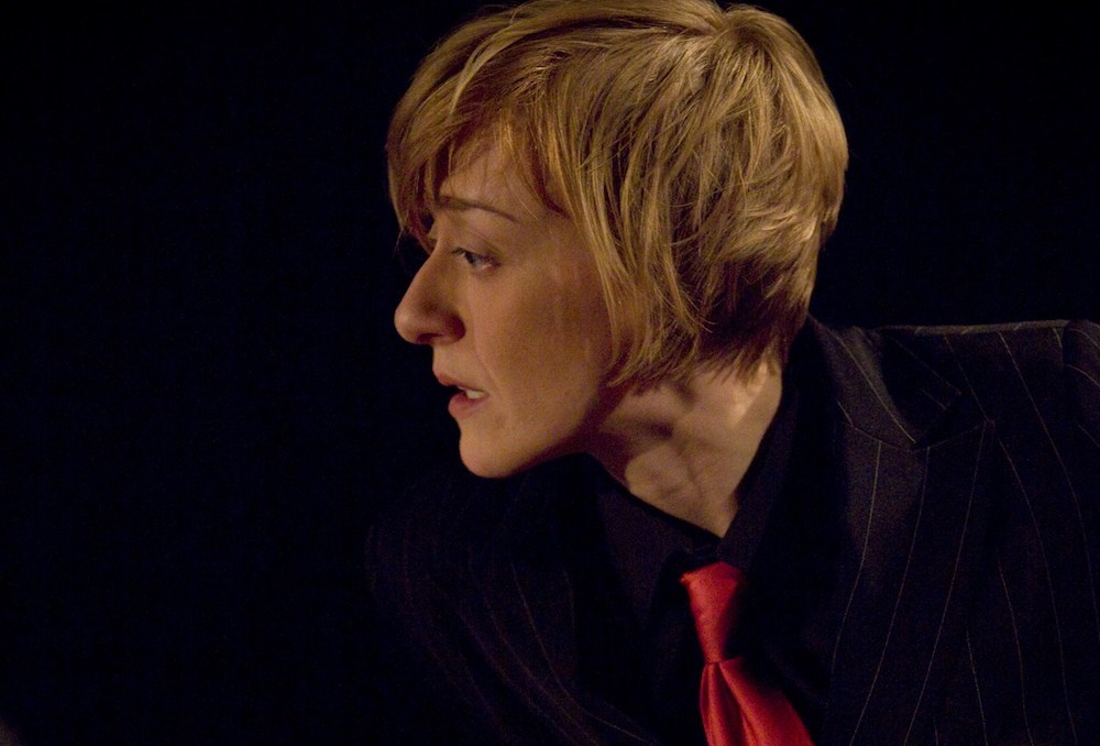 On a bright red space, designed by Garance Marneur, Lorne Campbell’s hour-long production makes good use of a blackboard, a whiteboard and a little model set. Performers Jon Foster (Galois) and Lucy Ellinson (Assange) tell the story, teasing out the similarities between the word radical as a mathematical function and radical as a political stance.
