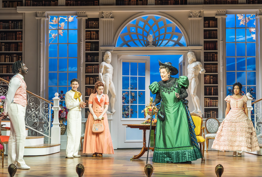 Max Webster’s effusively queer production, which opened last year with a cast that included Sharon D Clarke as Bracknell and Ncuti Gatwa as Algernon, is brightly designed by Rae Smith, with costumes that are simply, breath-takingly magnificent, and starts off as a joyful, flashy and exuberant reimagining of the play. As the curtain, which is graced with an old capacious handbag and overhung with a suitably ludicrous rotten-vegetable bouquet, rises, Alexander appears in delightful drag, pounding a grand piano. Wow! The show’s got off to a dazzlingly, a dizzying and hilariously crowd-pleasing start before a single word is uttered.